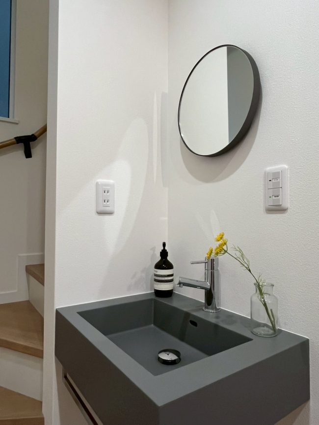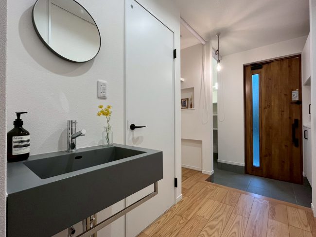 既存の手洗いを交換し、『デザイン性のある“見せる洗面台”』に。