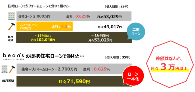 物件購入費とリノベーション費用をまとめて住宅ローンに組み込むことで、
