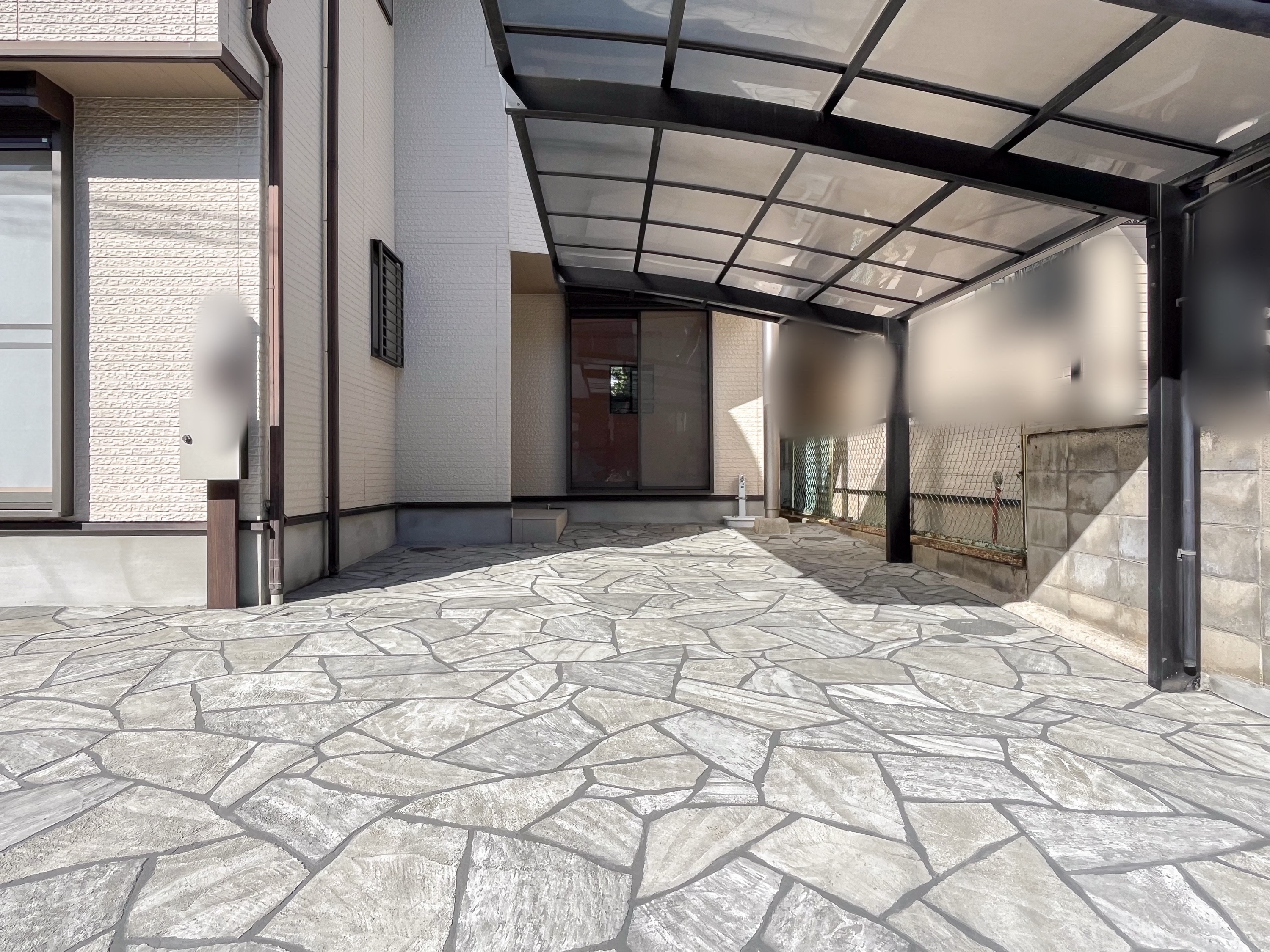 はじめは門扉と花壇を撤去するだけの予定でしたが、撤去後の既存コンクリートの色ムラが気になるとのことで、