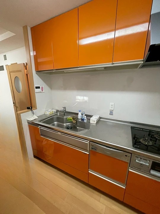 扉を閉めればすべて隠せるため、生活感を抑えたすっきりとしたキッチンが実現しました。