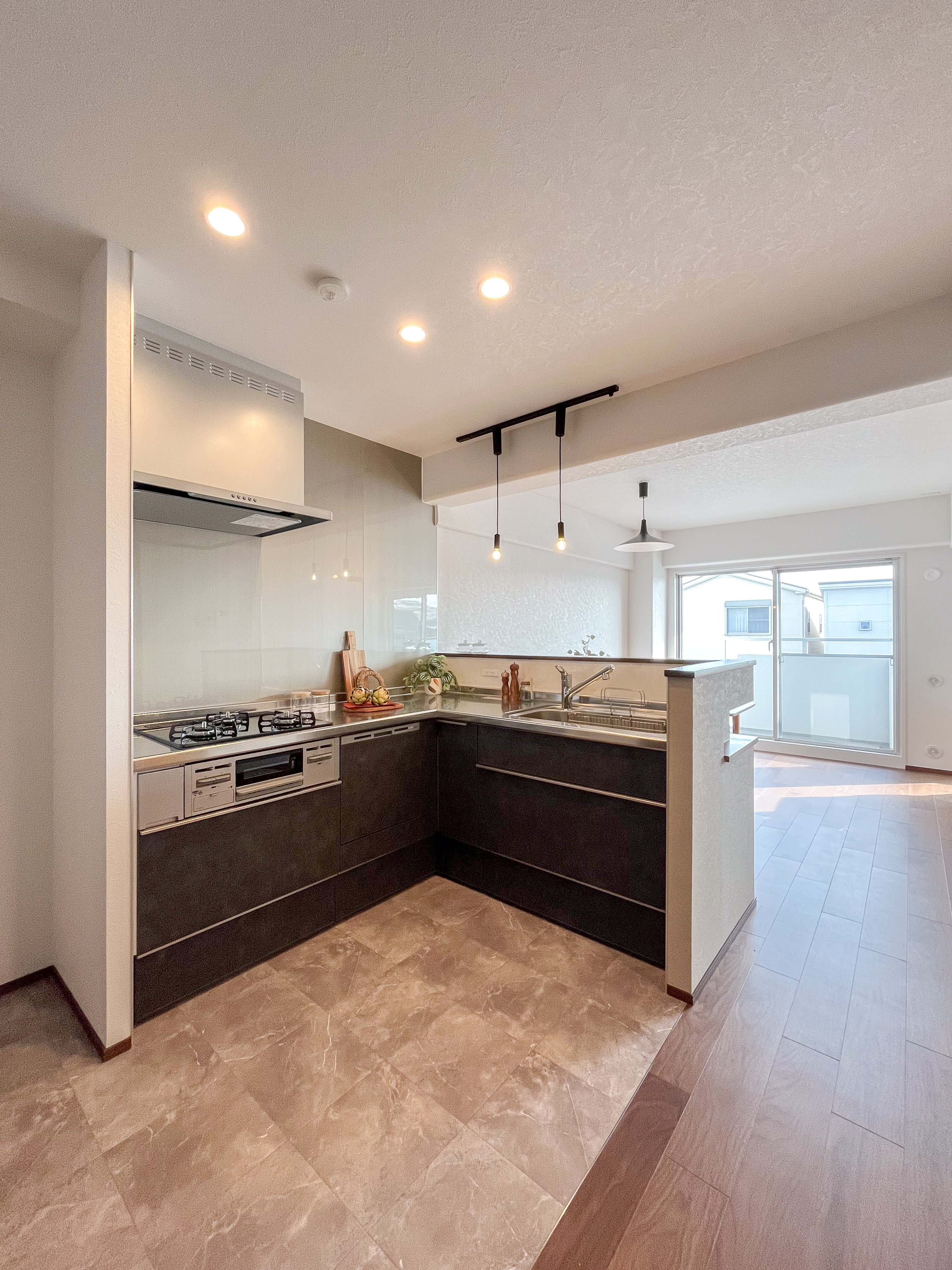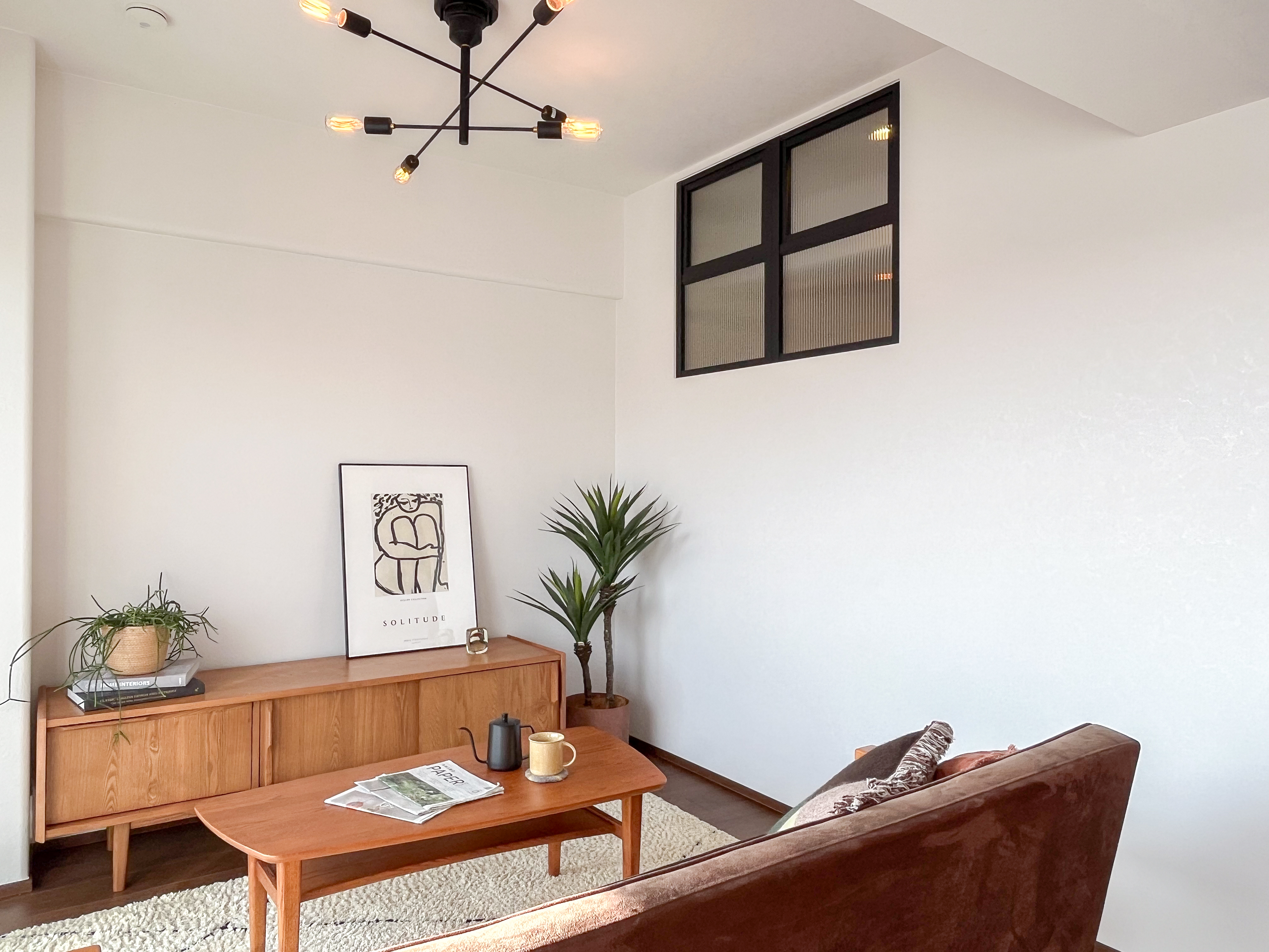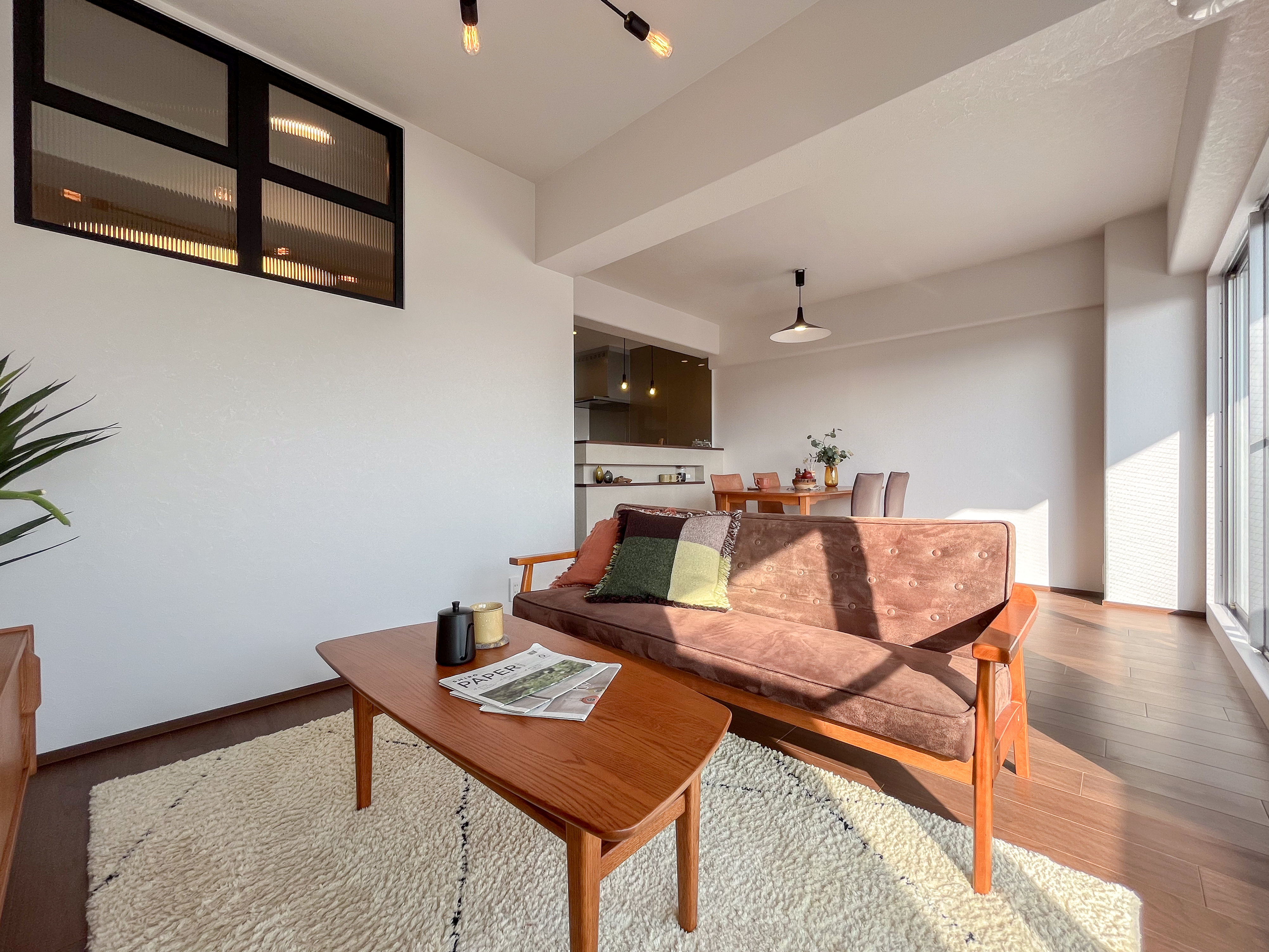 室内窓やキッチンまわりの工夫により、光とつながりを感じられる心地よいLDKへと生まれ変わりました。