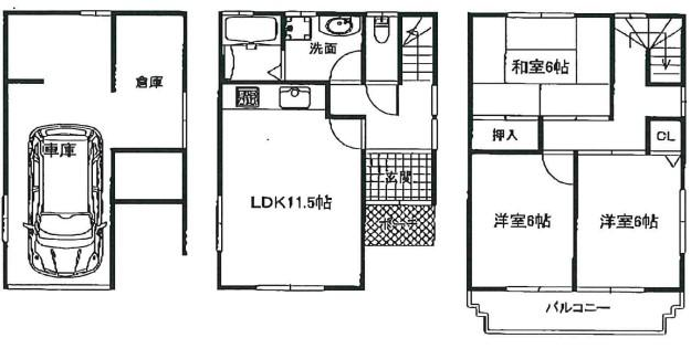 | 間取り | 4LDK | 間取り内訳 | 2FLDK11.5畳×1室 3F和6畳×1室 3F洋6畳×1室 |