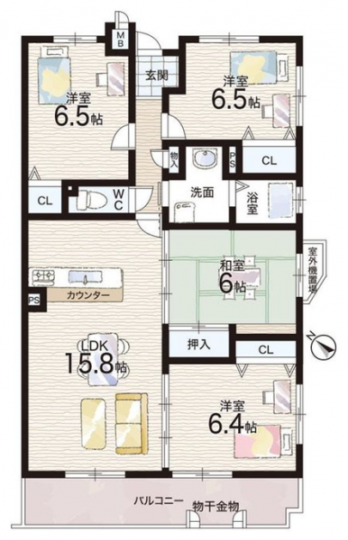 | 間取り | 4LDK | 間取り内訳 | 和6畳×1室 洋6.5畳×2室 洋6.4畳×1室 |