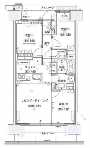 | 専有面積 | 63.13㎡ | 建物構造 | RC |