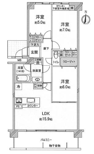 | 間取り | 3LDK | 間取り内訳 | 2FLDK15.9畳×1室 2F洋5畳 2F洋7畳 2F洋6畳 |