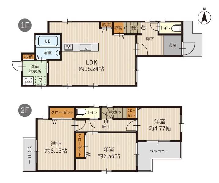 | 間取り | 3LDK | 間取り内訳 | 1FLDK15.2畳×1室 2F洋6.1畳×1室 2F洋6.5畳×1室 2F洋4.7畳×1室 |