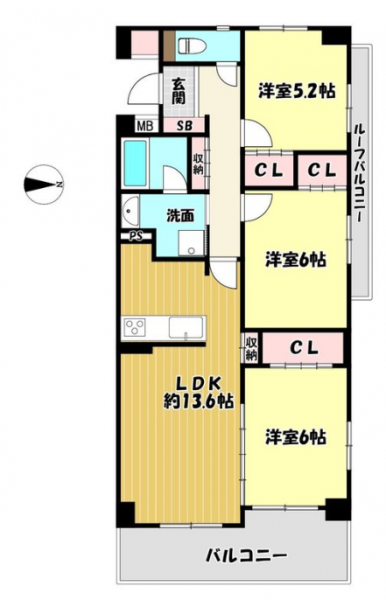 | 間取り | 3LDK | 間取り内訳 | 1FLDK13.6畳×1室 1F洋6畳×1室 1F洋6畳×1室 1F洋5.2畳×1室 |