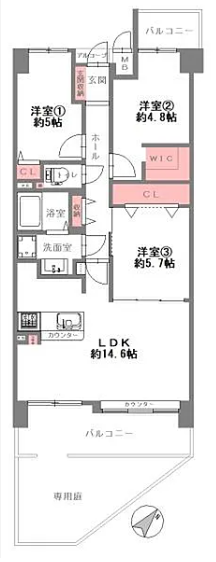 | バルコニー面積 | 14.22㎡ | 向き | 南東 |