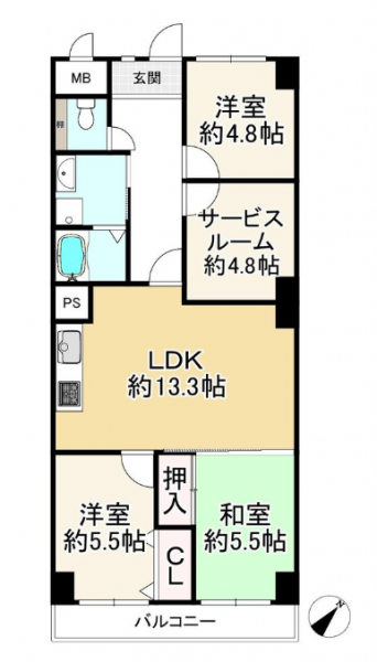 | バルコニー面積 | 6.78㎡ | 向き | 南東 |
