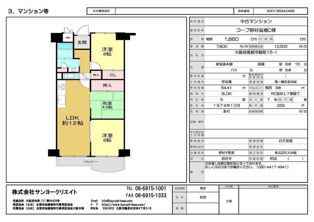 | 所在地 | 高槻市殿町 コープ野村高槻C棟 | ||
