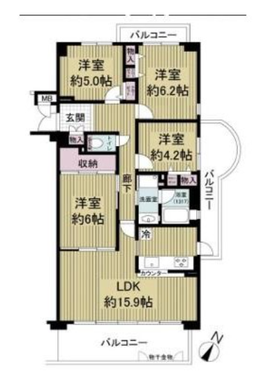 | バルコニー面積 | 22.94㎡ | 向き | 南東 |