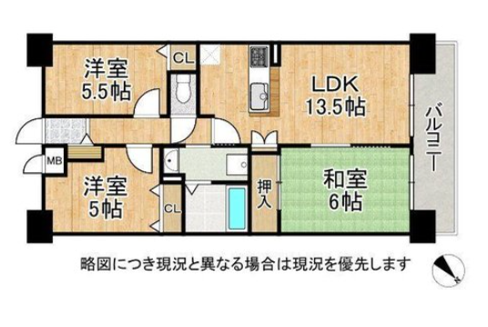 | 間取り | 3LDK | 間取り内訳 | 1F洋5畳×1室 1F洋5.5畳×1室 1F和6畳×1室 1FLDK13.5畳×1室 |