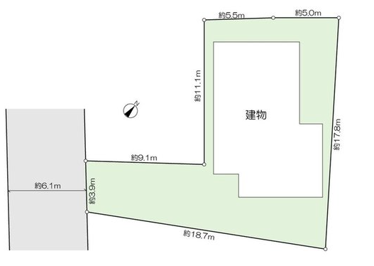 | 接道状況 | 南西6.1m 公道 接面3.9m 位置指定無 一方道路 | ||