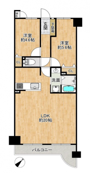| 間取り | 2LDK | 間取り内訳 | 3FLDK20畳×1室 3F洋5.6畳×1室 3F洋4.6畳×1室 |