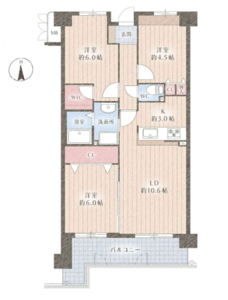 | バルコニー面積 | 向き | ||