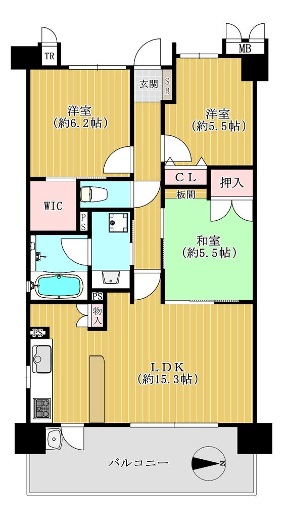| 間取り | 3LDK | 間取り内訳 | 3FLDK15.3畳×1室 3F和5.5畳×1室 3F洋6.2畳×1室 3F洋5.5畳×1室 |