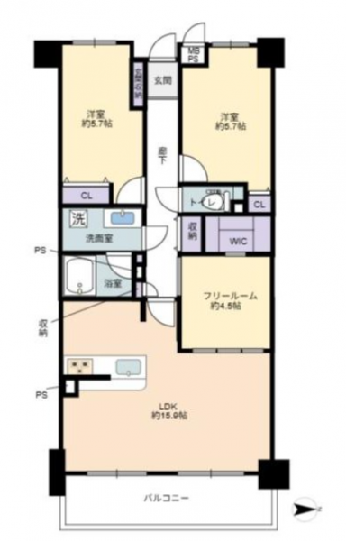 | 専有面積 | 74.3㎡ | 建物構造 | RC |